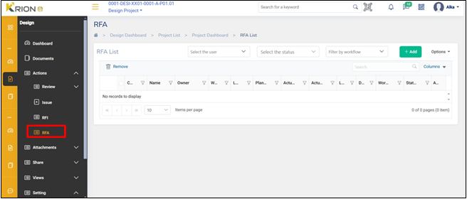 The columns that are displayed in the list can be customized as per the requirement by selecting the required fields. ARFs can be searched from the list from the search bar.