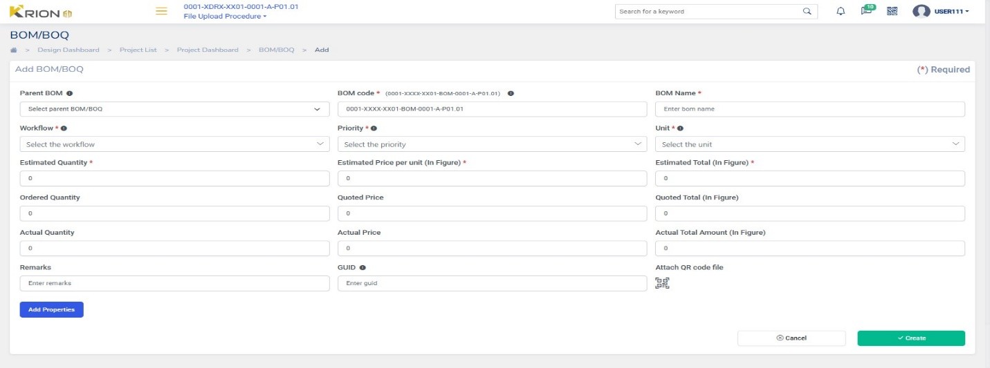· Finally Attach the QR code file of the BOM/BOQ for reference.