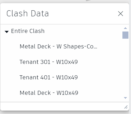 Note: To view only the Clash elements in the display Settings toggle off Ghost Hidden Objects