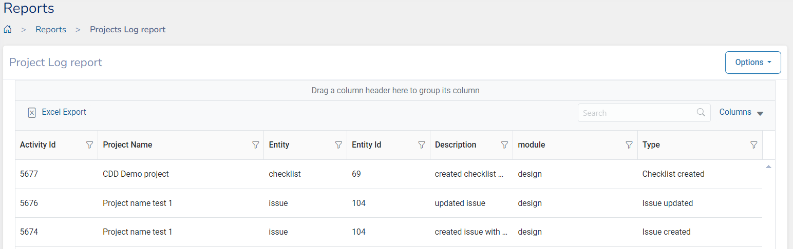 Project log report references to each project’ s log details.