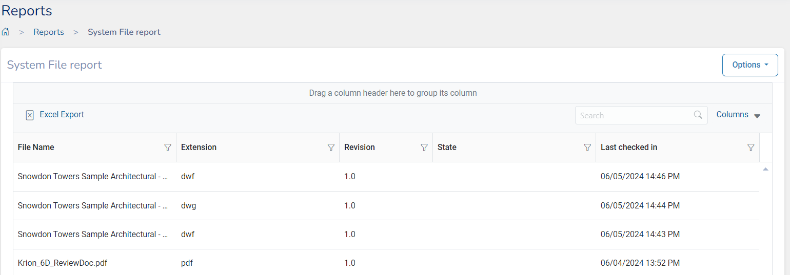 This report contains a list of all documents like Drawings, model files, and other PDFs related to all the projects.