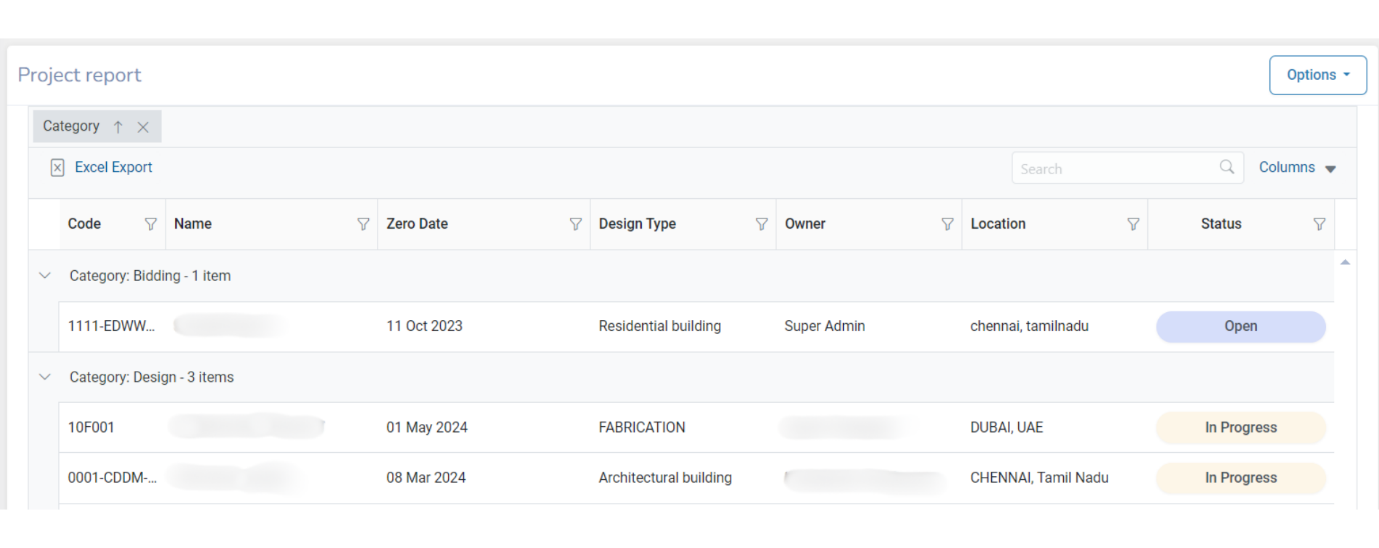 Here the project report has been grouped by Category column. One or more columns can be grouped using this tool.