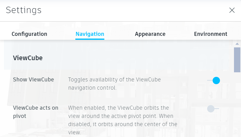 o Navigation Settings Adjust the controls and options related to navigating through the model or drawing, such as mouse sensitivity, keyboard shortcuts, or navigation modes.