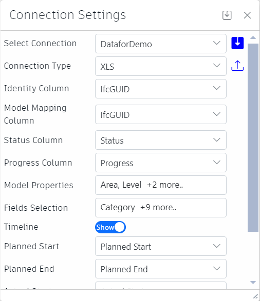 Note: The tool available in the top right corner of the Data Dialog visualizes the data. Along with the timeline tool, it enables the user to view the project's progress at each instant of time. The Icon turns green when the timeline view begins